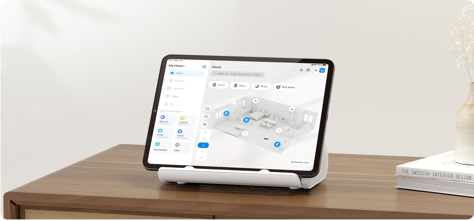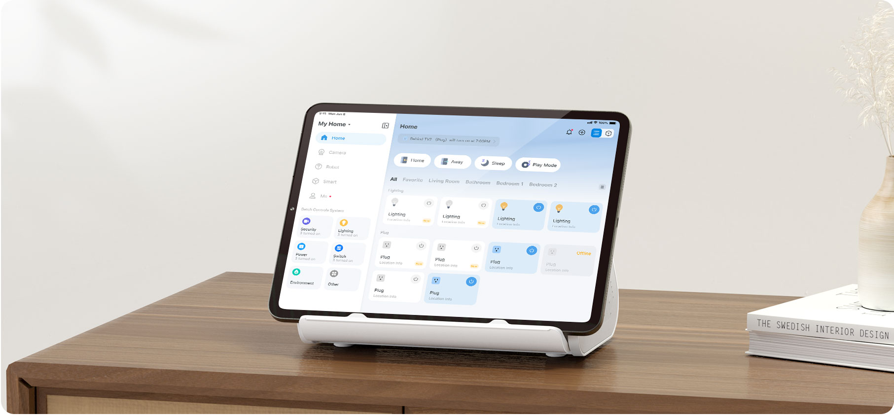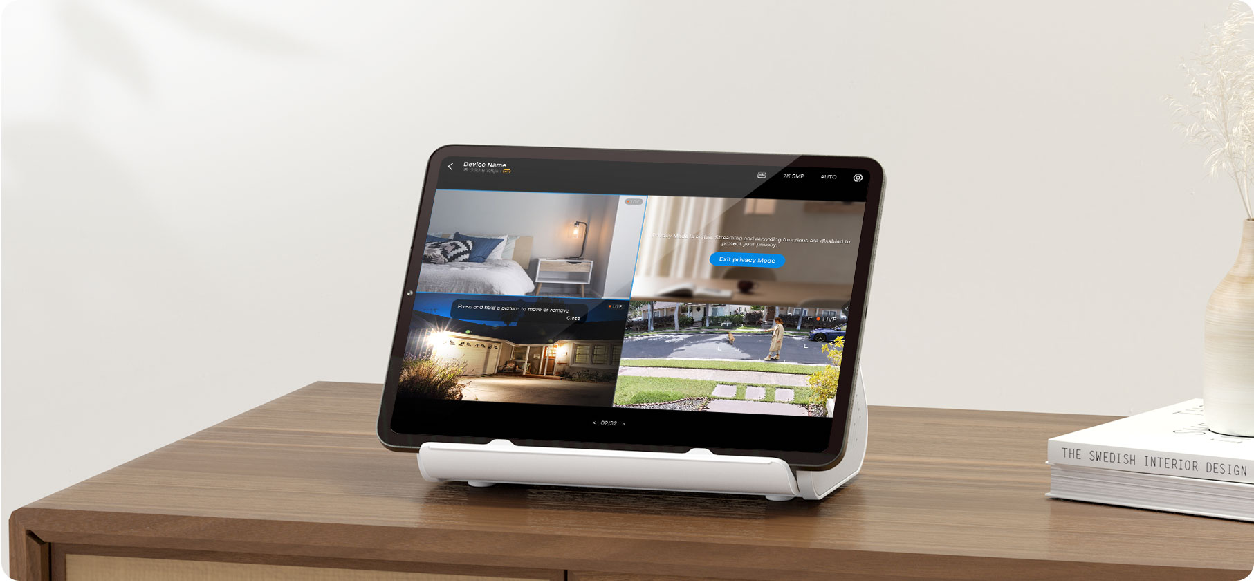 Surveillez facilement les flux de plusieurs caméras depuis différents emplacements sur un seul écran grâce à une tablette supplémentaire†. Visionnez les vidéos en direct de jusqu'à 4 caméras et bénéficiez d'une vue d'ensemble claire de tous vos appareils domotiques Tapo grâce à la version tablette de l'application Tapo.
